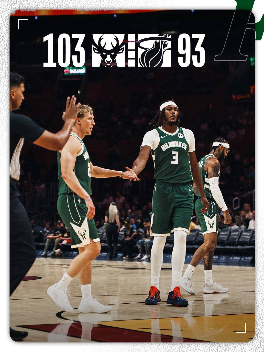 最后一节开始,热火迅速打出一波进攻,扩大领先优势至72-68。随后,雄鹿强势反击,不仅追平了比分,还一举实现反超,领先热火10分。尽管热火在小节后段努力追近分差,但未能改变比赛结果。本节比赛中,热火的韦尔表现抢眼,独得14分,其中包括2记三分球。最终,雄鹿以103-93赢得比赛。